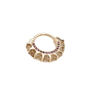Cirrus hinged ring with rutilated quartz and rhodolite in rose gold, 16g 3/8"
