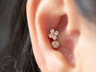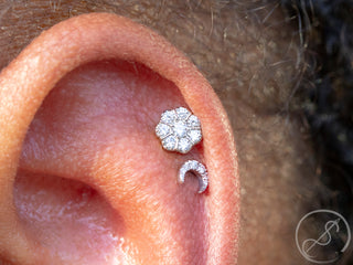 Gem captive bead with faceted gems, 4mm main gem and a 4mm/6mm dangle in titanium, white CZ